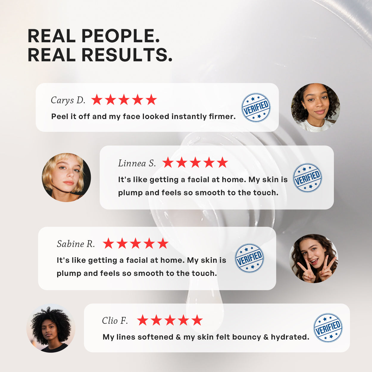 Grace After using this mask, my skin feels super soft, plump, and hydrated, and it just looks brighter and more refreshed—definitely gives me that youthful glow.